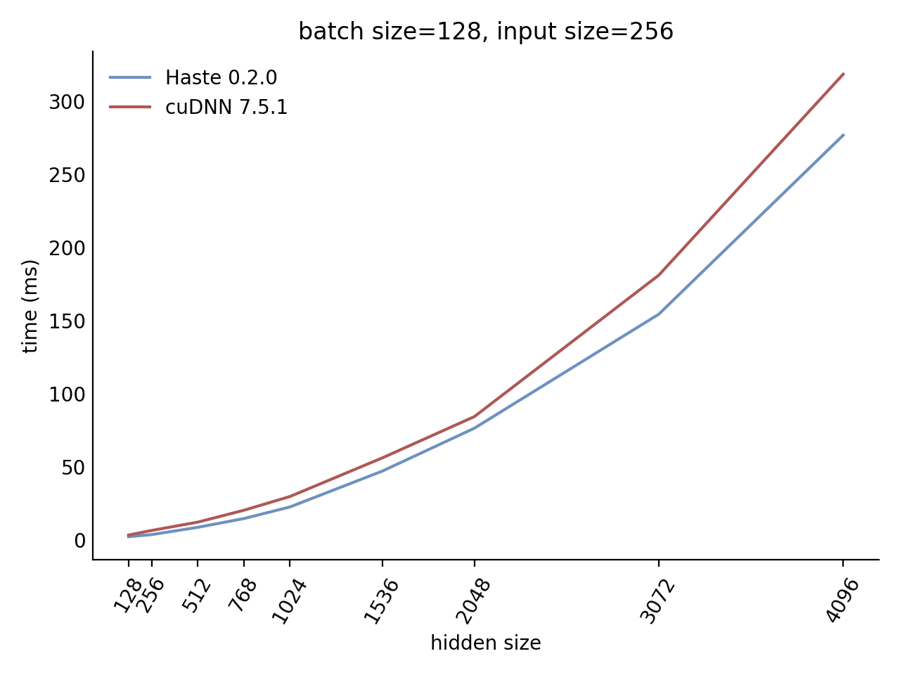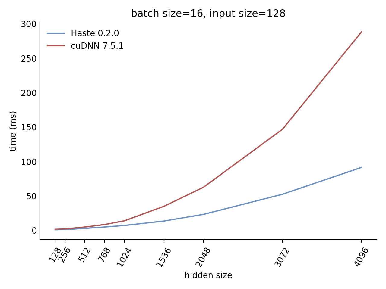 Haste is a CUDA implementation of fused RNN layers with built-in DropConnect and Zoneout regularization. These layers are exposed through C++ and Python APIs for easy integration into your own projects or machine learning frameworks.